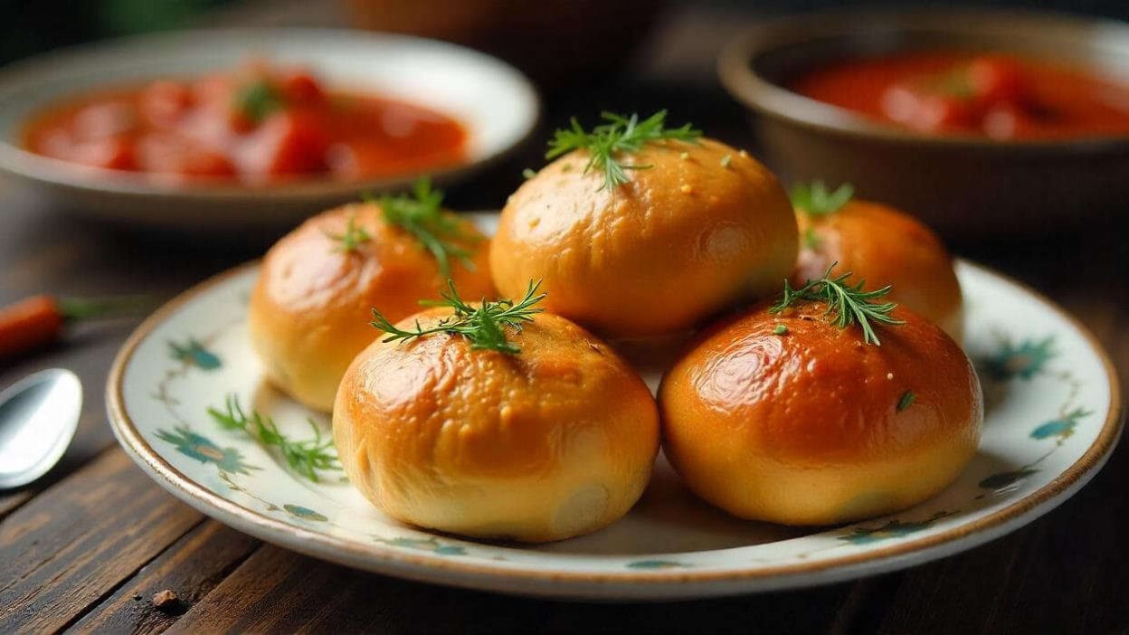 • Pampushky can be served not only with garlic dressing, but also with various sauces, such as sour cream or mushroom sauce.