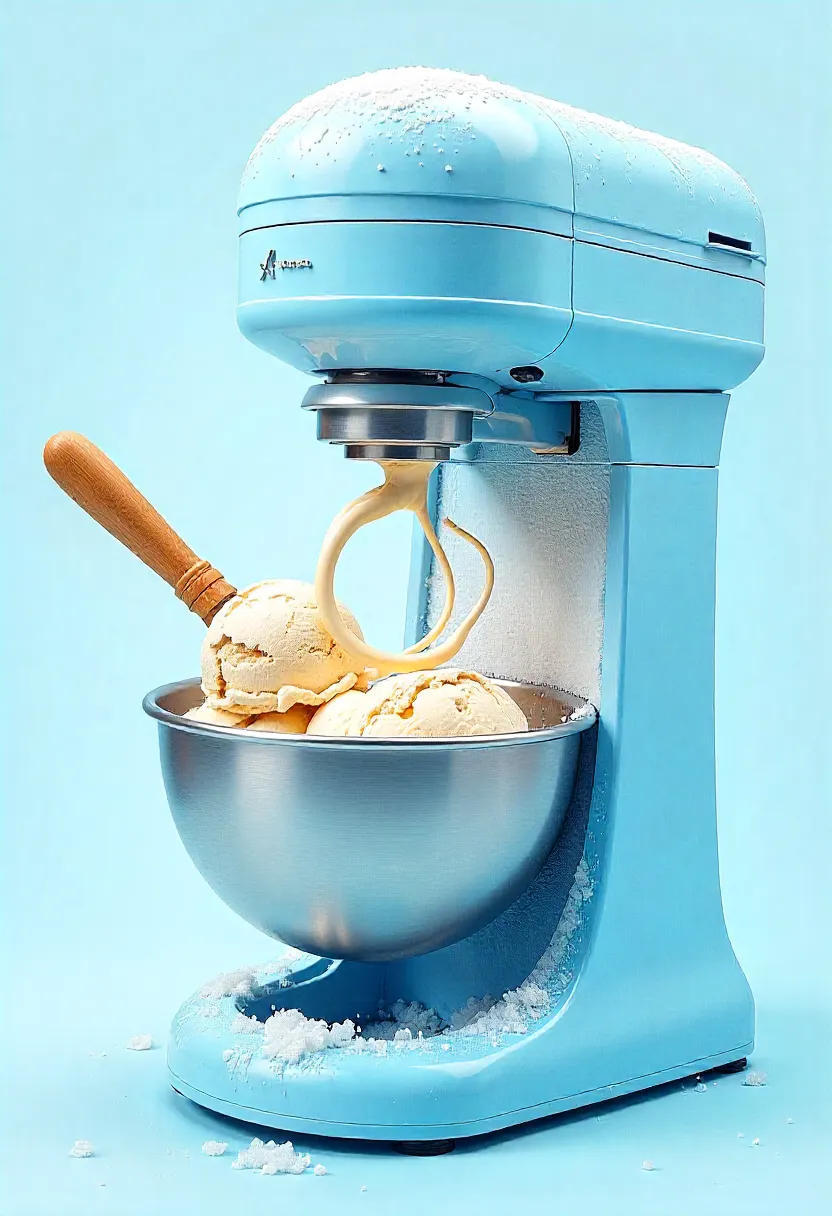 - Mechanical disruption: Ice cream makers constantly churn the base, breaking up growing crystals. A blender (like my mom’s trick) achieves the same effect by manually smashing crystals back into smaller fragments.
