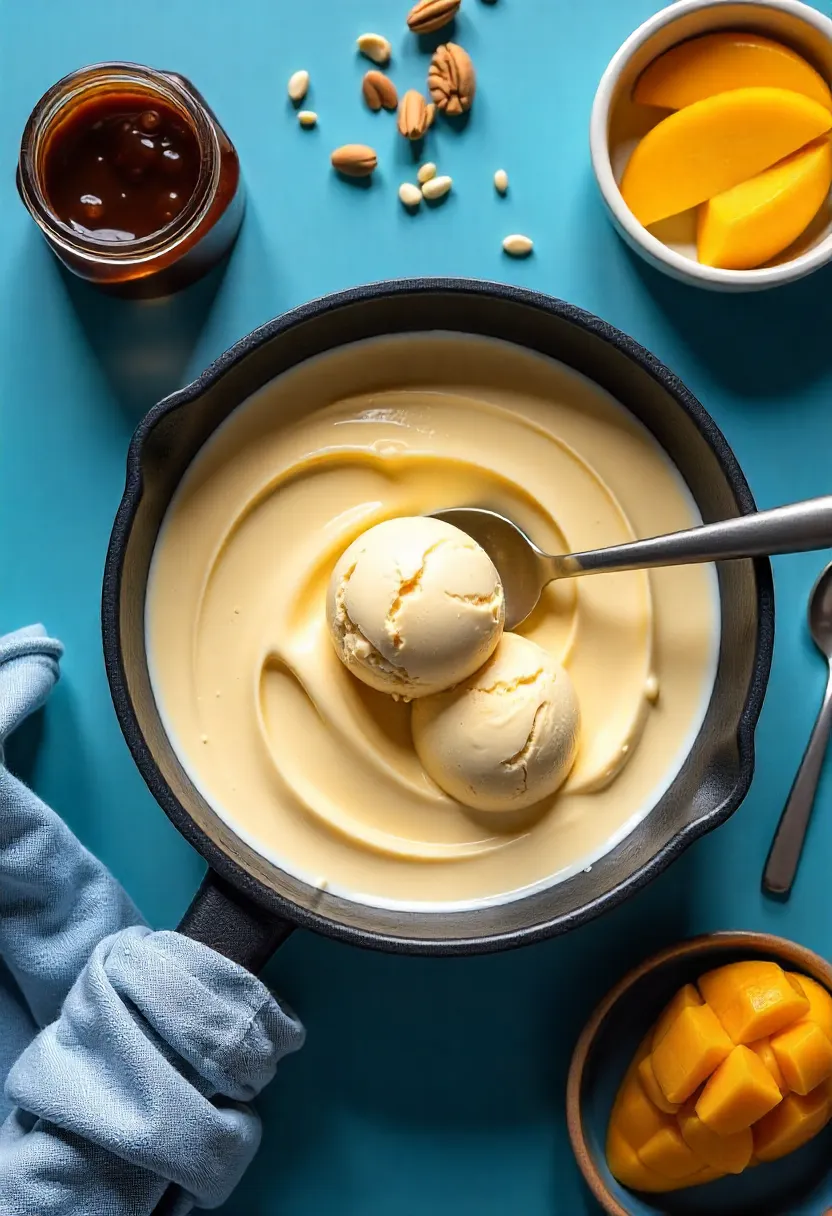 👉 Example: In a no-churn mango ice cream, the puree is boiled with sugar first, creating a thick, syrupy consistency. When folded into the condensed milk base, it freezes into a smooth, tangy swirl—no icy shards, just creamy tropical perfection.